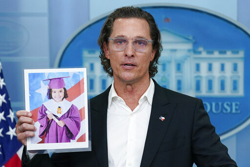 WASHINGTON (AP) — Academy Award–winning actor Matthew McConaughey made an appearance at the White House Tuesday to call on Congress to “reach a higher ground” and pass gun control legislation in honor of the children and teachers killed in last month’s shooting rampage at an elementary school in his hometown of Uvalde, Texas.