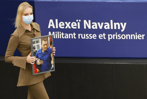 From Daria Navalnaya, the daughter of jailed opposition leader Alexei Navalny, holding her father's portrait at the European Parliament, in Strasbourg, France, where she received the Sakharov Prize for Freedom of Thought Award, the European Union's top human rights prize, on behalf of her father, to a burned man receiving care at a hospital after he was injured when a gasoline truck overturned and exploded, in Cap-Haiten, Haiti, killing multiple people and injuring dozens of others, to the grief-stricken sister of Rameez Ahmad, a policeman, wailing at his funeral, after he was killed in a gun attack on a bus carrying policemen the outskirts of Srinagar, India, this photo gallery highlights some of the most compelling images from around the world made or published by The Associated Press in the past week.
