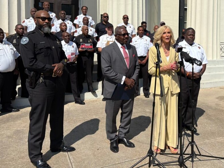 Horhn and Fitch held a joint press conference Monday morning in front of Jackson city hall to highlight that the city’s fire and police stations would now be stocked with the opioid overdose-reversing medication naloxone. It’s part of Fitch’s “One Pill Can Kill” campaign, a public awareness effort not funded by opioid settlement money to prevent fatal fentanyl overdoses.