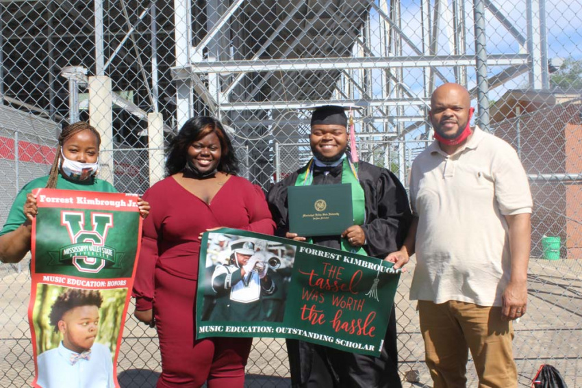 Standing with his family following the ceremony, Forest Kimbrough Jr. of Greenwood was happy to graduate with a bachelor’s degree in music education.