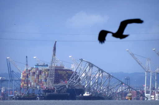 It landed on the ship’s bow after the Dali lost power and crashed into one of the bridge’s support columns shortly after leaving Baltimore. Since then, the ship has been stuck amidst the wreckage and Baltimore’s busy port has been closed to most maritime traffic.