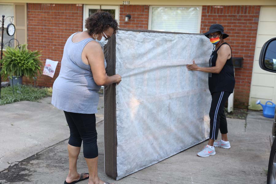 Along Mabyline Street in east Greenwood, residents could be seen towing away large pieces of household items, such as chairs, flooring and mattresses, and tossing them in piles in front of their homes.