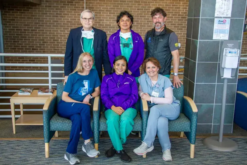 Bridge of Life coordinated the visit of two doctors from Guatemala to work with Dr. John F. Lucas III of Greenwood Leflore Hospital to learn how to perform and teach the arteriovenous fistula creation procedure to help improve the care of dialysis patients in the Central American country. Pictured are, from left, (front) Katie Chandler with Bridge of Hope, Dr. Gabriela Lopez of Villa Nueva Hospital, Karen Watts-RN, (back) Dr. Lucas, Dr. Yener Rojas of Villa Nueva Hospital, and Marty Self, CRNA.