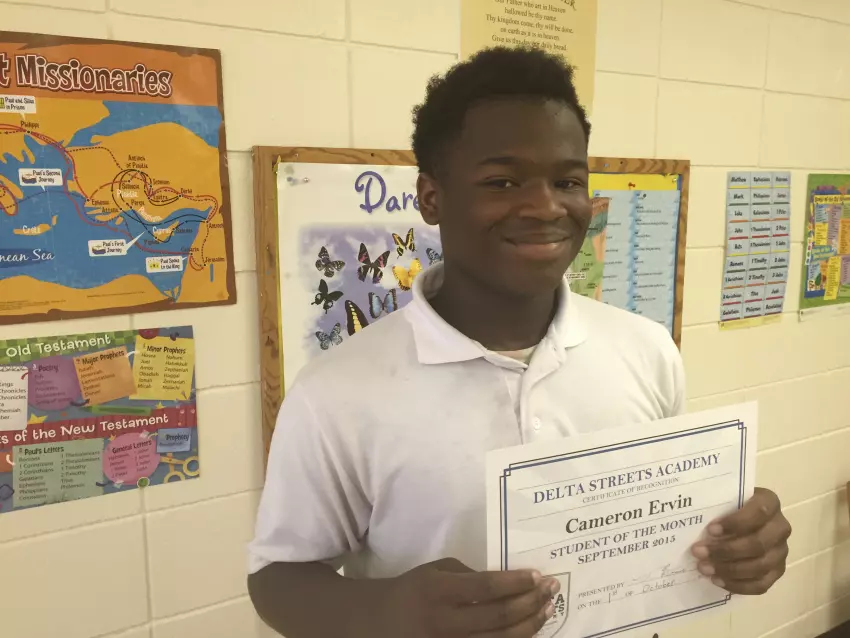 Cameron Ervin, 14, of Greenwood is Delta Streets Academy’s first Student of the Month.