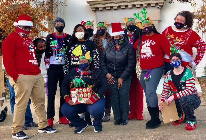At the Leflore Legacy holiday event are founding staff members, kneeling, from left, Mikwaevonn Mills and Whitney Christenson; standing, front row, LaToya Spurlock-Fluker, Dr. Tamala Boyd Shaw and Kiara Williams; standing, back row, Lederius Hooker, ElJohnthan Holston, Kasey Holman, Cory Blaylock, Iris Saffold, Gail Ambeau and Charlotte Arrowsmith.