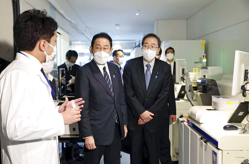 Kishida unveiled his plan to consider easing border controls Saturday after visiting Tokyo’s Haneda international airport, where he observed quarantine areas and a worksite vaccination rollout for airline workers.