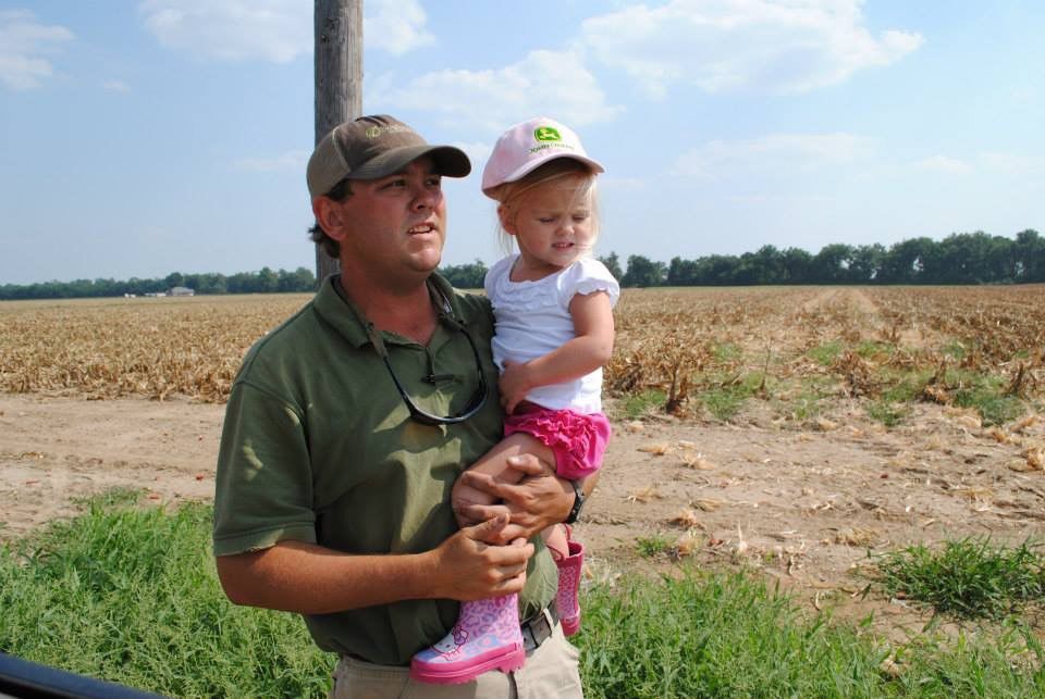 While farming, Richard Brown holds his daughter, Mary Landry. Brown is the recipient of the 2018 Young Farmer of the Year award. He will be honored at the Greenwood-Leflore County Chamber of Commerce’s Ag Fest on Nov. 13.