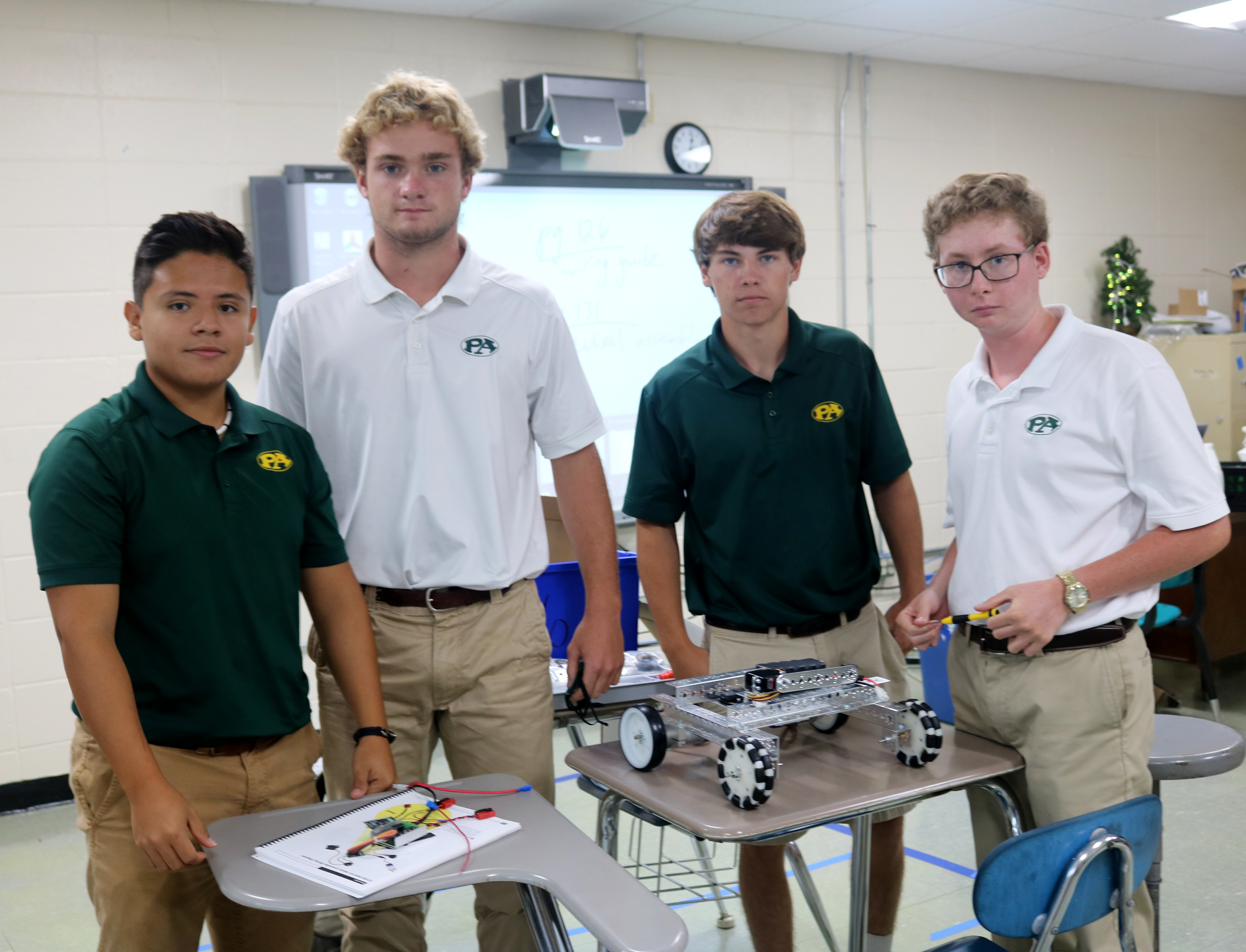 From left are engineering design and robotics students Eric Cortes, Jackson Hodges, Dalton Elmore and Josh Collins.