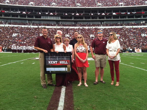 “It’s a really special day for our family. The only thing that could’ve made it better if Dad could’ve been right here on the field with us,” said Drew Hull, Kent’s 25-year-old son. “With his name up there, his name will now be forever linked to Mississippi State football.”