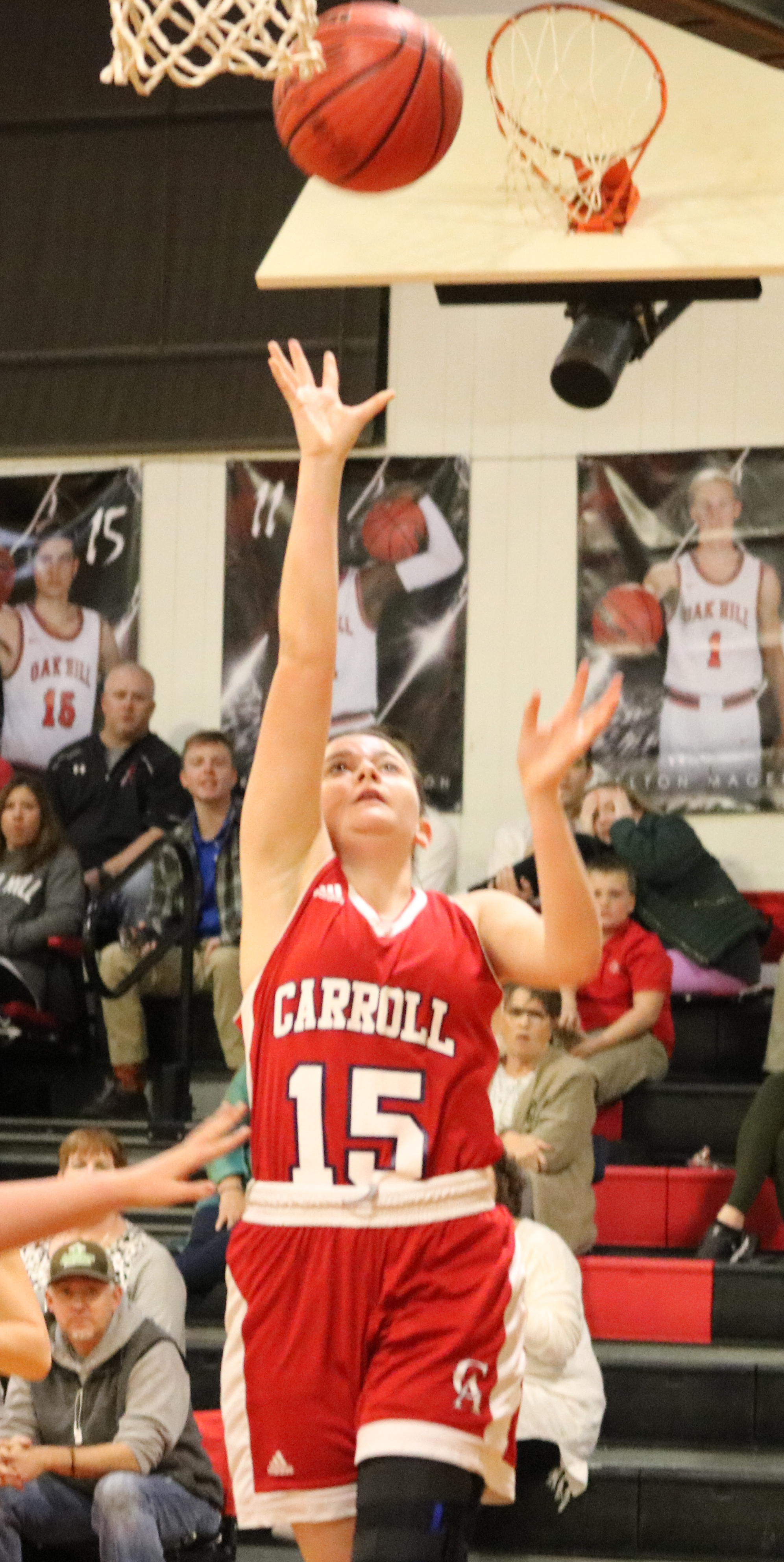 In the girls game, the Lady Rebels moved to 4-3 in district with a 44-21 triumph over Oak Hill. Carroll (16-10) led 6-5 after one, 19-8 at the half and 36-17 at the end of the third period.