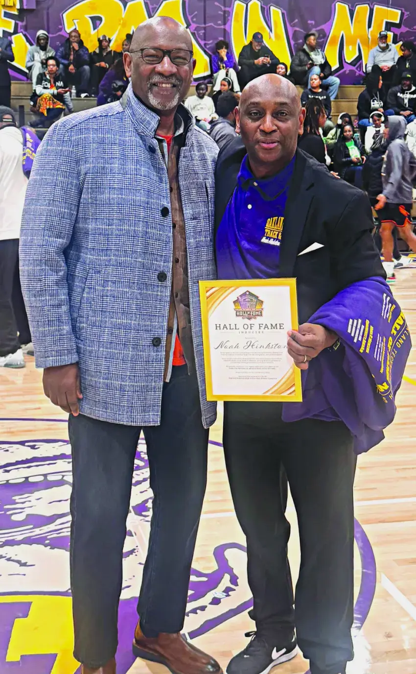 Greenwood resident and Pineville, Louisiana, native Noah Hinkston was inducted into the Oakland Technical High School Hall of Fame on Friday in Oakland, California. Hinkston, right, stands next to former track coach Ronnie Turner during Friday’s induction celebration. Hinkston was a record-setting track and cross-country athlete at OTHS from 1981-1985, winning the 800 meter and 1,600 meter title races at the Oakland and San Francisco track and field championships in 1984. He also coached the sport for 10 years. Today, Hinkston works as an industrial injury prevention specialist at ATI Physical Therapy.