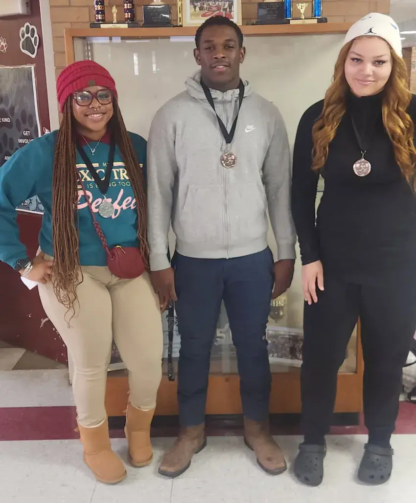 The Pillow Academy junior high girls basketball team won the District 1-5A Tournament with a 44-23 win over Bayou Academy Saturday in Columbus. Members of the team are, from left, coach Mignon Hodges, Maycee Jones, Liza Self, Riley Coleman, Molly Downing, Miriam Jane Rodgers, Jada Ware, Mari Wilson Gnemi, Abby Kate Johnson, Karra Nix, Kaylin Killebrew, Parker Smith, Emma Greco, Grace Gregory, London Butts, and managers Kylee Nix and Ryals Fair; in back, coach Durwin Carpenter. (By Marty Self)