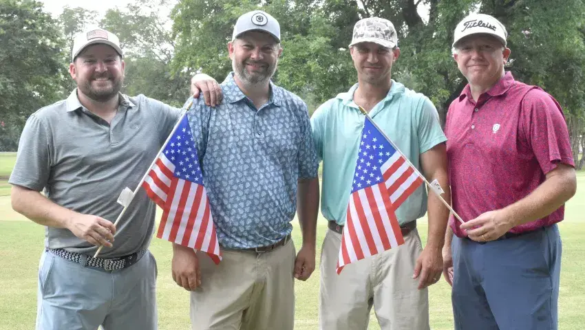 The Greenwood Country Club held its July 4th Individual Flag Tournament Thursday on Independence Day, bringing a flock of local golfers to participate in the action. Celebrating the holiday on the course are, from left, James Dale, Rob Leard, Scott Wynne and Zach Luke. (By Jared Conerly, Copyright 2024, Emmerich Newspapers, Inc)