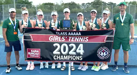 The Pillow Academy tennis team captured four individual state titles and the overall girls state championship at the State 5A tournament held Thursday at the Ridgeland Tennis Center. Pillow won titles in No. 1 girls doubles, No. 2 girls doubles, No. 2 girls singles and mixed doubles. Members of the team are, from left, coach Suresh Chawla, Annie Powers, Sarah Douglas Thach, Madeline Carroll, John Carter Walker, Izzy Hodges, Millie Smith, Jane Kimmel Buford and head coach Marko Lovrinovic.