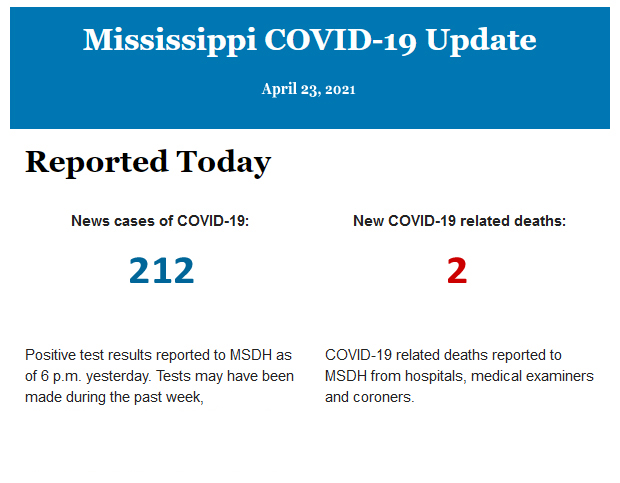 Listed below is the daily COVID-19 update for the state of Mississippi.