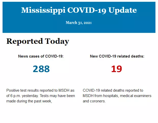 Listed below is the daily COVID-19 update for the state of Mississippi.