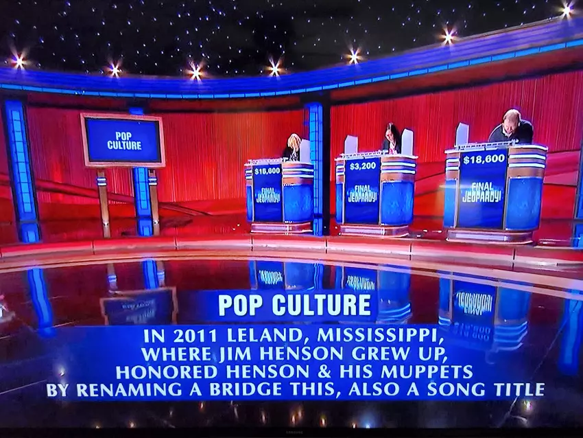 Thursday's broadcast of "Jeopardy" included a final clue that was based on a Mississippi event, when Leland renamed a bridge in 2011 to honor Muppets creator Jim Henson, who grew up in the Delta town. All three contestants got the right answer, and here's an extra clue: It was the opening song in 1979's "The Muppet Movie."