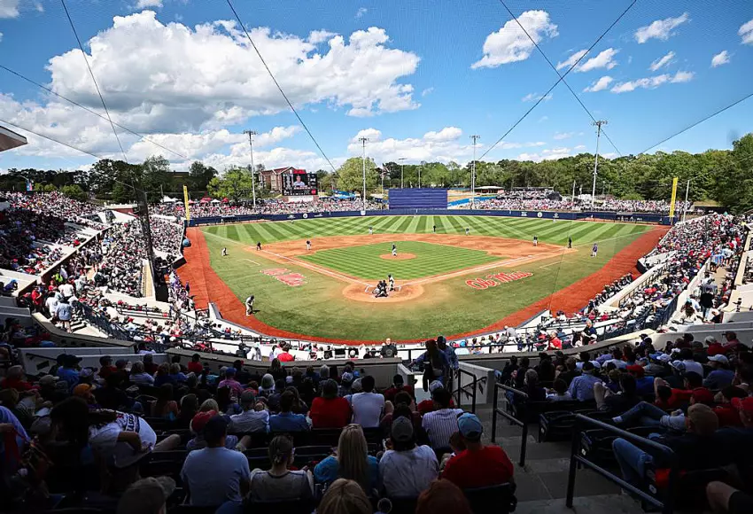 A large crowd packed in Swayze Field for the Ole Miss vs. LSU series. | Photo by Kiana Dale/Ole Miss Athletics