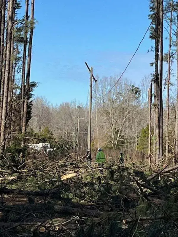 Crews from Delta Electric Power Association work on repairs and restoration efforts in Carroll and Montgomery Counties Monday. The power company said crews are working diligently across all circuits in the counties still without power. Servicemen are also reconnecting those who have had repairs where electricians were needed.