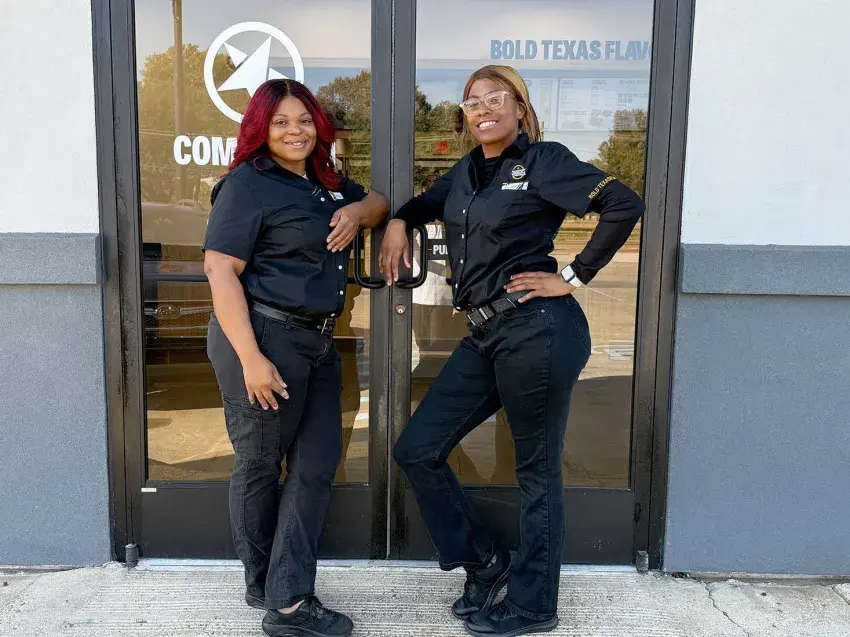 The staff of Church’s Chicken is preparing for a reopening of the restaurant on Monday. Here, Tiasha Jones, assistant manager, stands with Olivia Dean, general manager, at the entrance.