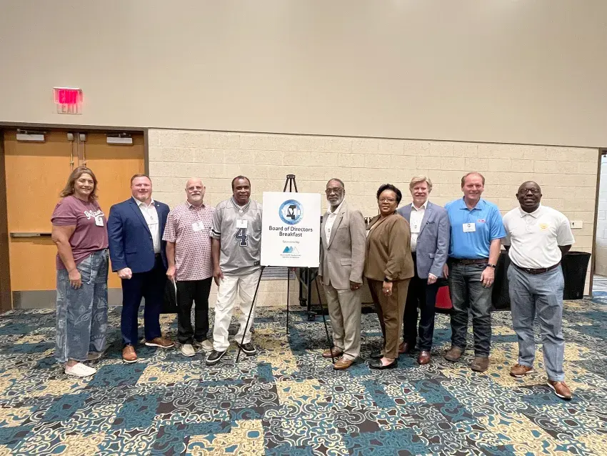 Carroll and Leflore counties were represented Friday morning at the Mississippi Municipal League Board of Directors meeting at Cadence Bank Arena and Conference Center in Tupelo. Board members heard about the issues MML will be lobbying for when the 2026 Legislature begins in January, and the MML 2025-2026 budget was adopted. The next scheduled meeting for the board will be in January 2026 during the MML Mid-Winter Legislative Conference in Jackson. From left are MML President and Woodland Mayor Patti Pettit, Kilmichael Alderman Matt Bennett, French Camp Mayor Glen Barlow, Greenwood Ward 4 City Councilman Charles McCoy, Indianola Ward 4 Alderman Marvin Elder, Vaiden Mayor Lesia Hemphill, Natchez Mayor Dan Gibson, North Central Mayors’ President and North Carrollton Mayor Ken Strachan and Tylertown Vice Mayor Frederick McGee.