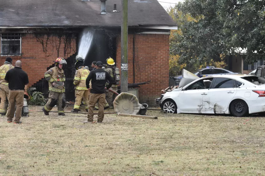 A Nissan Altima with a Leflore County license plate was driven into a brick home at 300 McGehee St. around noon Thursday, breaking into a wall and causing a fire. The house is near the intersection of Martin Luther King Jr. Drive and Main Street, and bystanders said they heard a handful of gunshots coming from Main. The car, they said, ran through a fence before hitting the house. They also said a man in the house got out and appeared not to be injured but two men in the vehicle were transported for hospitalization. Greenwood Police Chief Terrence Craft was asked for information but did not immediately provide it. (By Susan Montgomery)