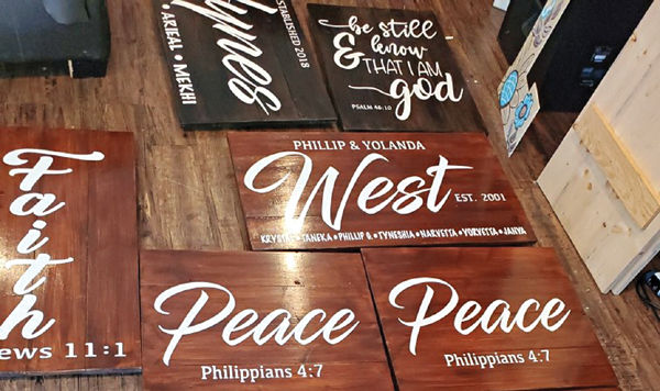When he isn’t teaching, he’s either shooting various portraits, such as family photos or graduation photos, or creating wooden door signs, welcome signs and wall pieces in his backyard.