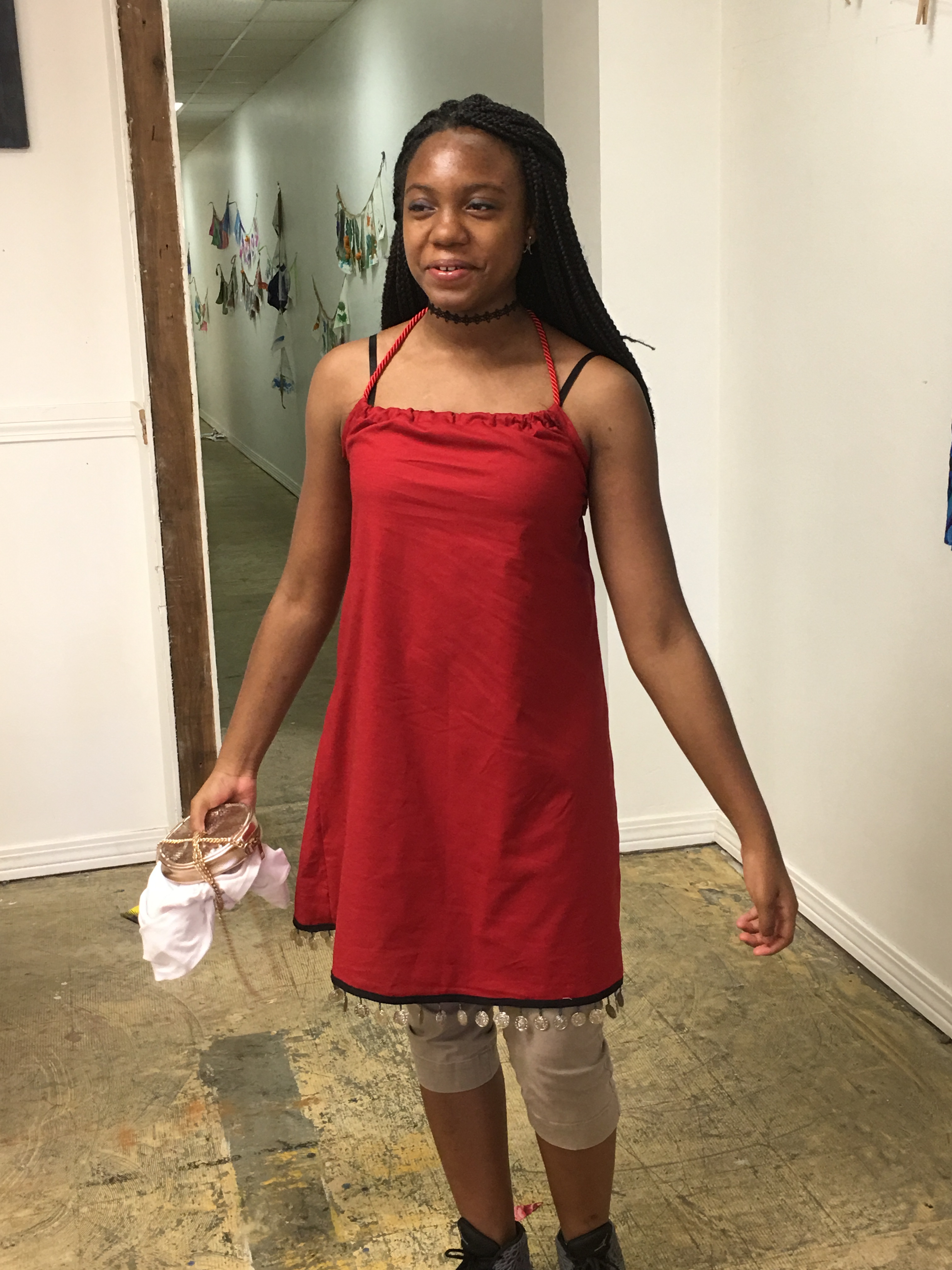 Kyria Cooper, who recently graduated from Amanda Elzy High School, tended to the long, flowing tunic she’ll wear in the show.