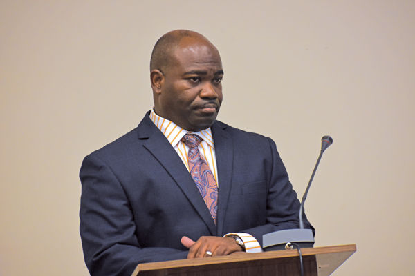 Moore and Self spoke highly of Banks, as he stood at a podium in front of the board in a blue suit as opposed to his fire chief’s uniform.