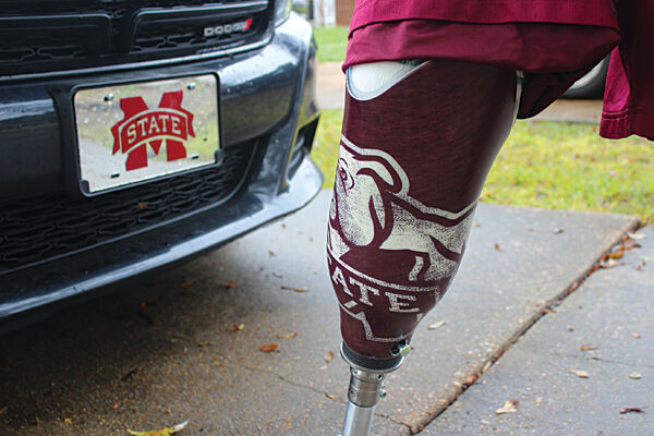 When Woods, a lifelong Mississippi State University fan, was asked what design he wanted for his leg implant, the answer was easy: “I asked them if I could get Mississippi State on it.”