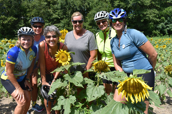 A group of bikers from the Jackson area take a break from Bikes, Blues & Bayous to pose Saturday among a patch of sunflowers along Money Road. From left are Celia Coffey, Lauree Davis, Mary Dabney Randall, Angie Deleon, Gretchen Ware and Dina Thomas.