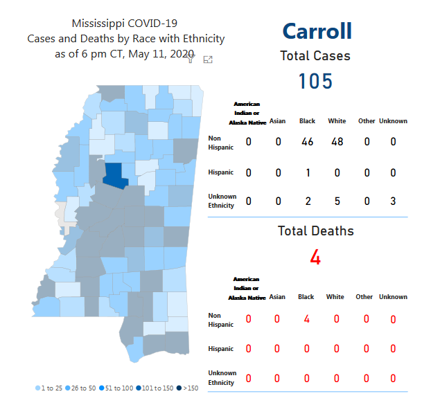Mississippi COVID-19 cases and deaths as of May 11, 2020