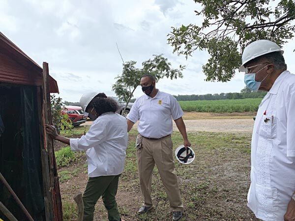 Minerva Clemon, left, shows Leflore County Supervisor Anjuan Brown and state Sen. David Jordan the old well that pumped undrinkable water.