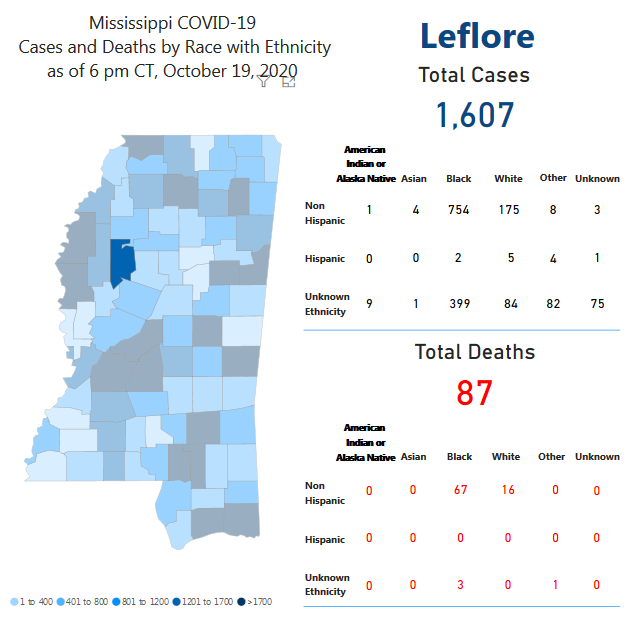 By comparison, Leflore County during that save time period averaged 3.65 new cases daily per 10,000 residents, the 17th highest in the state. Mississippi, averaging 2.72 new cases daily per 10,000 residents, ranks 15th in the nation overall.