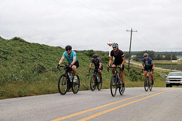 Greenwood Gravel Grind cyclists Andy Laird, Chris Roberts, Blake Andrews and Skip Kuzel begin the hilly trek in Carroll County.