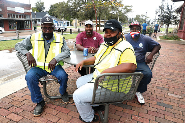 At the Greenwood Gravel Grind post-ride party are, from left, Bozo Scott, Steve Patterson, Ungelique McKinnon and Roosevelt McKinney.