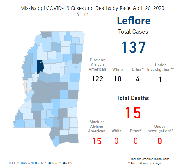All 15 individuals to die from COVID-19 in Leflore County have been African American.
