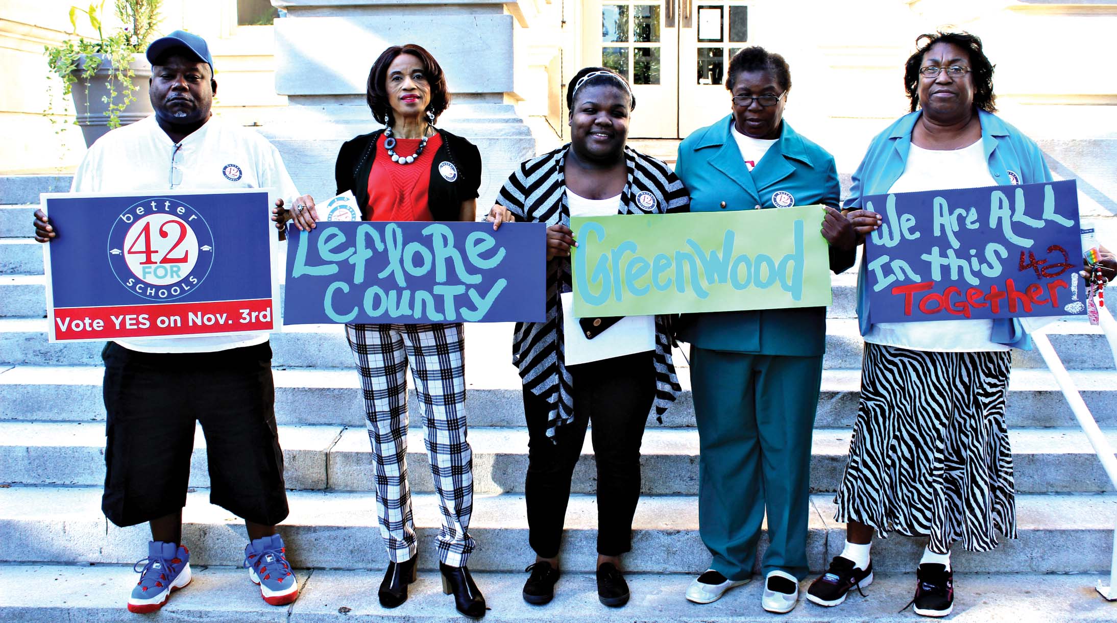 A few supporters of Initiative 42, a statewide ballot initiative regarding funding of the public schools, held a rally at the Leflore County Courthouse on Monday in an effort to draw attention to the issue in advance of the Nov. 3 general election.