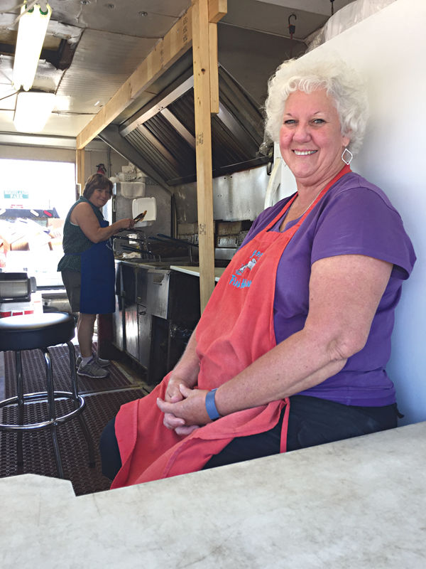 Candy Hony, left, and Cynthia Smith work at the Larry’s Fish House food trailer in Greenwood Thursday. Larry Kelly, owner of the restaurant, said it would not yet reopen inside its building in Itta Bena.