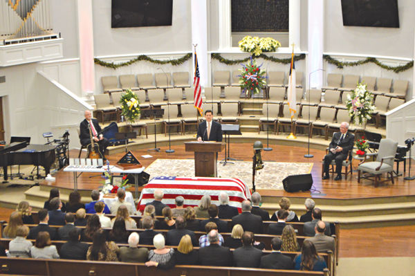 Before the funeral ended, the Rev. Keith Stevens sang “God Bless the USA” with everyone standing during the entire performance.