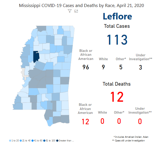 Leflore County COVID cases and deaths as of April 21, 2020