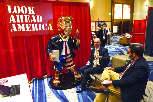 Look Ahead America was a sponsor at this year's Conservative Political Action Conference, a gathering that typically draws Republican presidential contenders. The group garnered considerable attention for a large golden statue of a “surfer” Trump, complete with red, white and blue shorts, that was part of their booth.