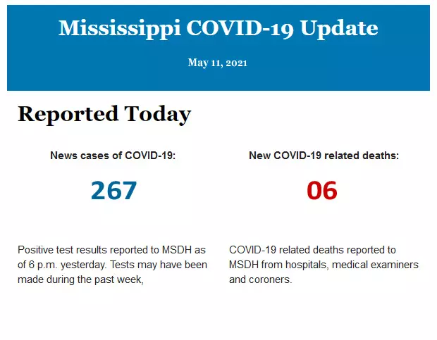 Listed below is the daily COVID-19 update for the state of Mississippi.