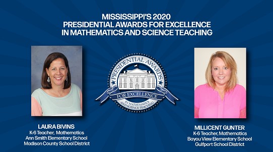 Two Mississippi teachers earned national recognition this week as recipients of the 2020 Presidential Awards for Excellence in Mathematics and Science Teaching (PAEMST).