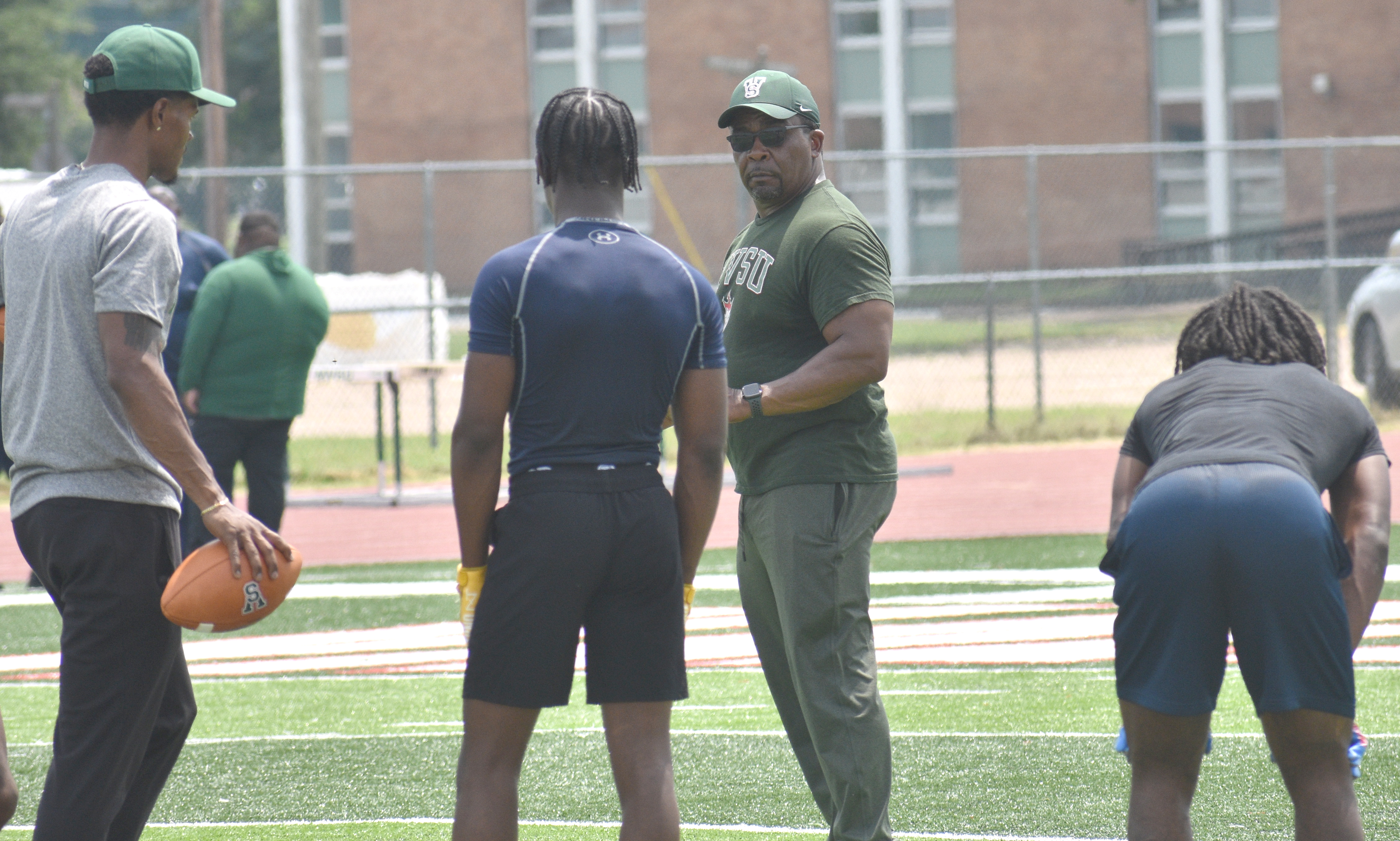 Head coach Terrell Buckley supervised the action and often would step in to talk to the players. He even threw some passes to them during the route-running part of the camp.