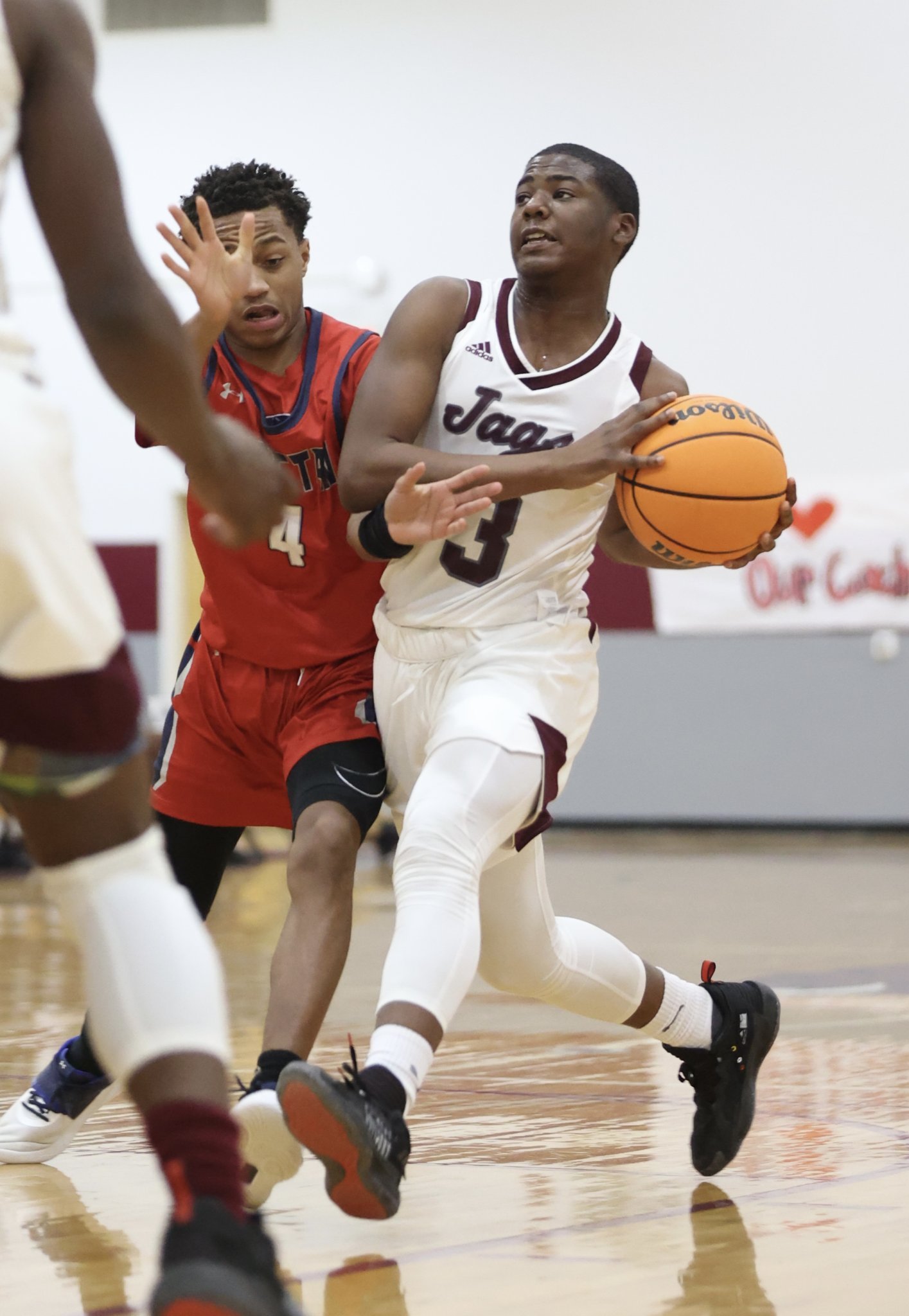 With their backs against the wall, McGlothan and fellow senior guard Kendarius Head caught fire to bring J.Z. George back into contention. The duo accounted for all 31 of the Jaguars’ points in the fourth quarter as McGlothan scored 16 points and Head knocked down five 3-pointers to ignite the home crowd in North Carrollton.