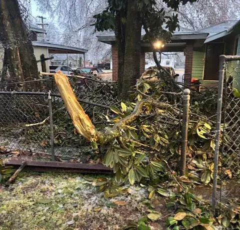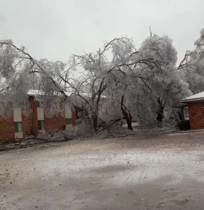 Greenwood Utilities posted Sunday that about 4,500 of its customers were without electricity. It reported Monday that approximately 2,000 customers had had their power restored, but the falling of ice and tree limbs continue to cause outages.