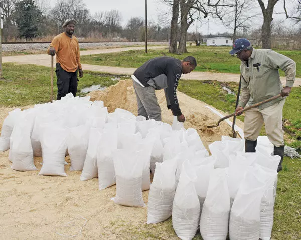 With a population of only 151 people, the town is caught between the Tallahatchie River on the north, out of its banks and flowing as wide as a farm field through the Delta, and the Black Bayou on the south, swollen with more than 10 inches of rain last week.