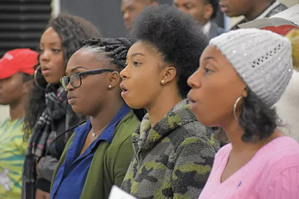 Members of Mississippi Valley State University’s Valley Singers rehearse for the annual Christmas concert, “O Holy Night: A Celebration of Love, Unity, and Peace,” to be presented Thursday night at First Baptist Church of Greenwood. From left are Jaza Tonth, Cortney Dyer, Yeshiva Davis and Jasmine Redmond.