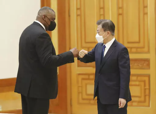 Yoon Suk Yeol, the presidential candidate of the main opposition People Power Party, who was elected South Korea's new president on Thursday, holds bouquets as he is congratulated by party's members and lawmakers at the National Assembly in Seoul, South Korea, Thursday, March 10, 2022. Yoon Suk Yeol, a conservative former top prosecutor, was elected South Korea's new president on Thursday, defeating his chief liberal rival in one of the country's most closely fought presidential elections. (AP Photo/Lee Jin-man, Pool)